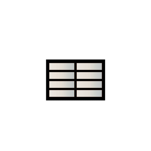 The latest door to join our catalog, the timid but spectacular 9X8 full view garage door. Frosted tempered glass encased in a matte black aluminum frame.